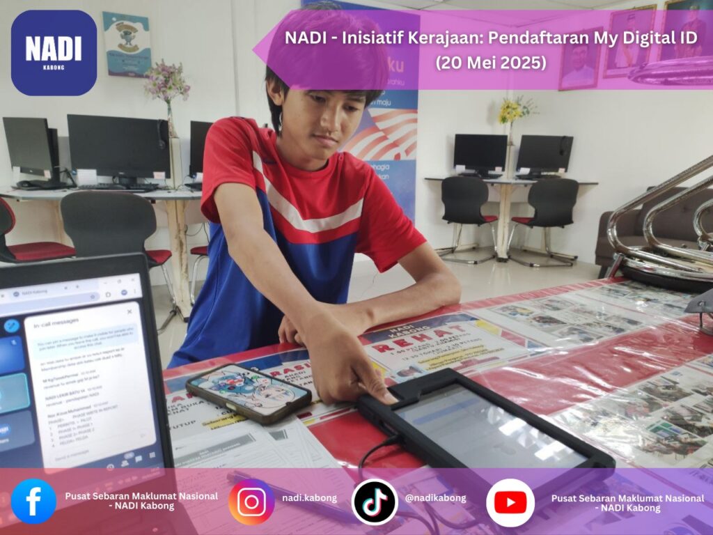 NADI – Inisiatif Kerajaan: Pendaftaran MyDigital ID merupakan usaha kolaboratif untuk menyokong agenda pendigitalan negara melalui pengenalan dan pendaftaran identiti digital rasmi rakyat Malaysia. Program ini bertujuan untuk memberi pendedahan serta bimbingan secara langsung kepada masyarakat mengenai kepentingan dan kaedah pendaftaran MyDigital ID, selaras dengan inisiatif transformasi digital sektor awam oleh kerajaan.