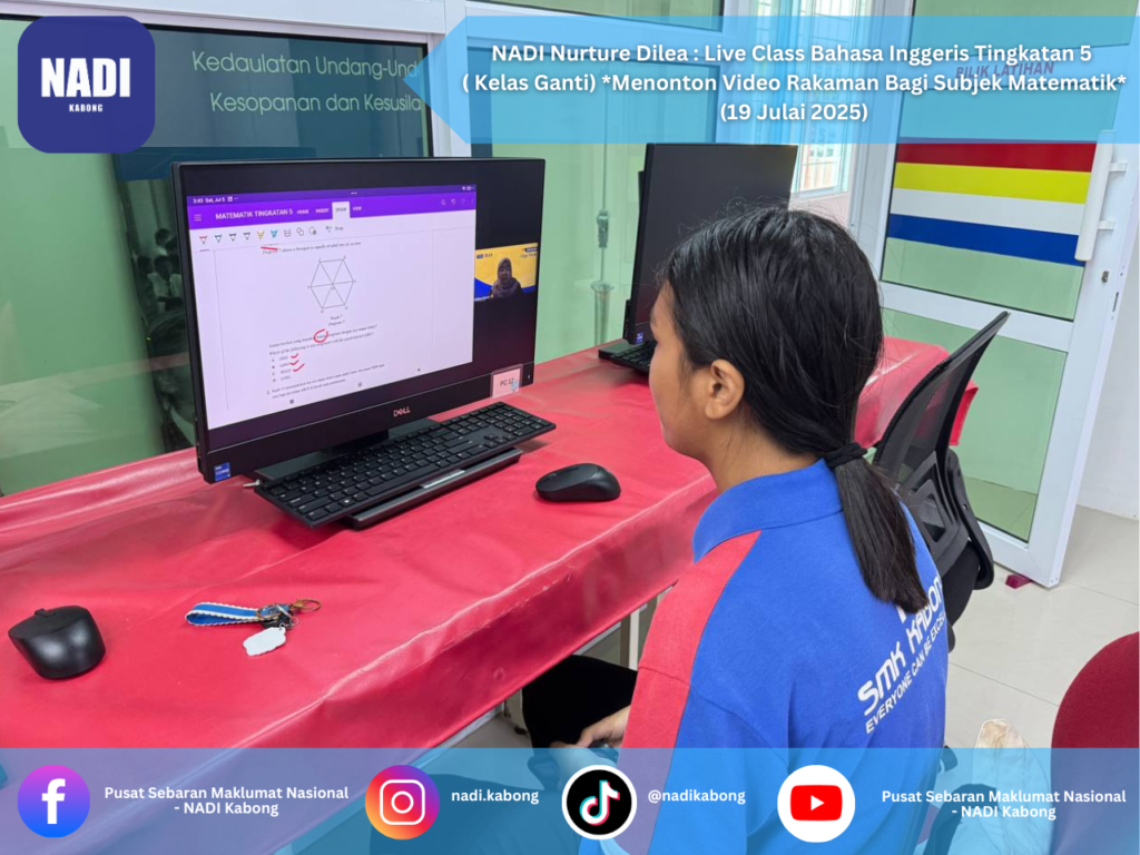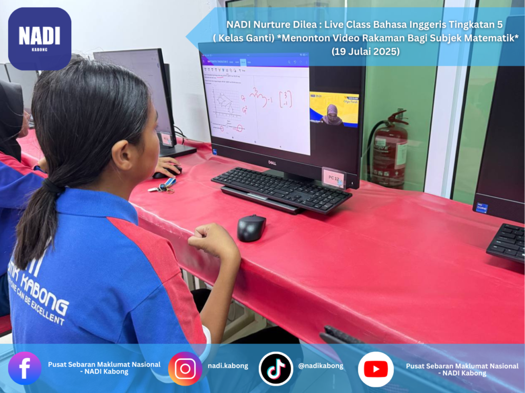 NADI Nurture Dilea: Live Class Bahasa Inggeris Tingkatan 5 ( Kelas Ganti) Menonton Video Rakaman Bagi Subjek Matematik