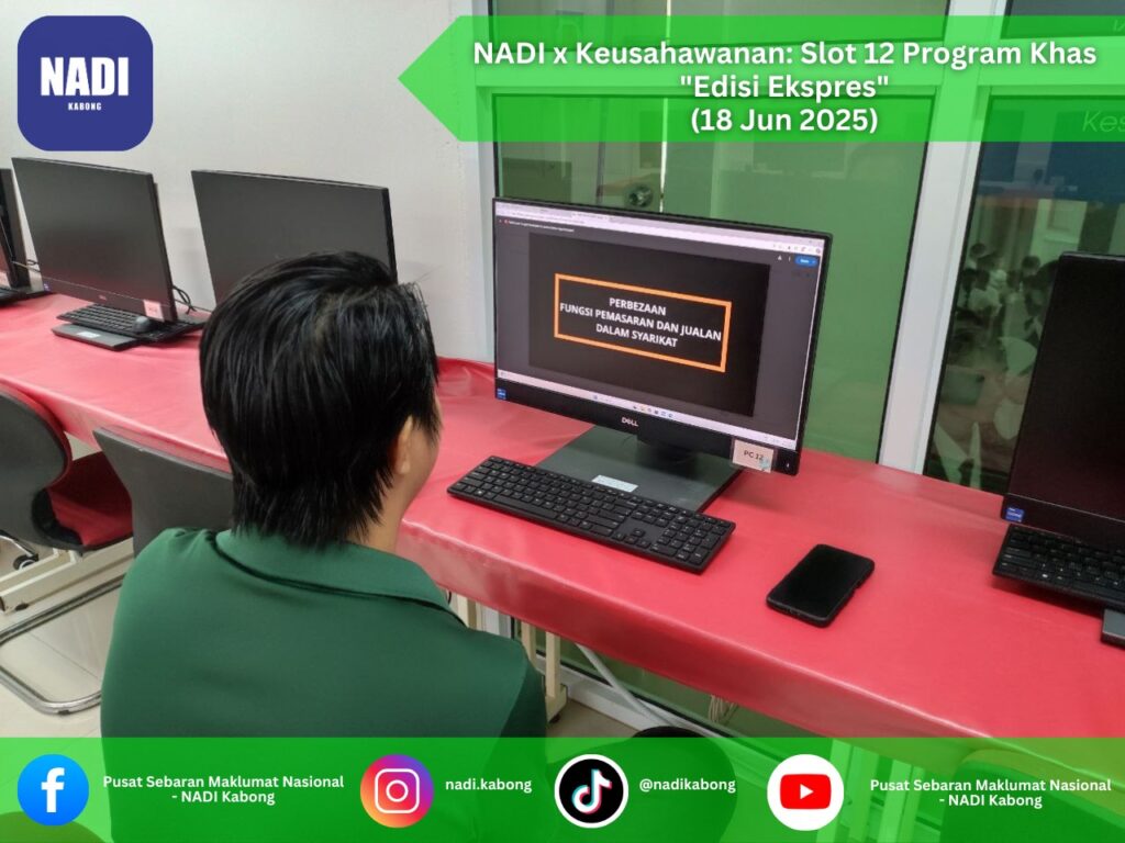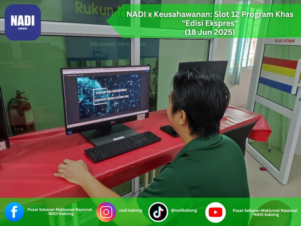 NADI x Keusahawanan: Program Khas “Edisi Ekspres” merupakan inisiatif padat dan ringkas yang direka untuk memberi pendedahan pantas kepada peserta dalam bidang keusahawanan. Program ini merangkumi tontonan video keusahawanan yang memberikan inspirasi dan maklumat asas, webinar atas talian bersama pakar industri untuk sesi interaktif dan pembelajaran langsung, serta podcast eksklusif yang membincangkan kisah kejayaan usahawan tempatan dan tips membina perniagaan.